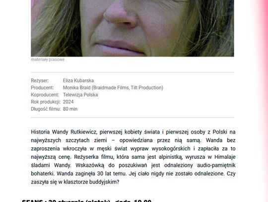 30 stycznia (piątek ), godz. 19.00 : "WANDA RUTKIEWICZ. OSTATNIA WYPRAWA" :