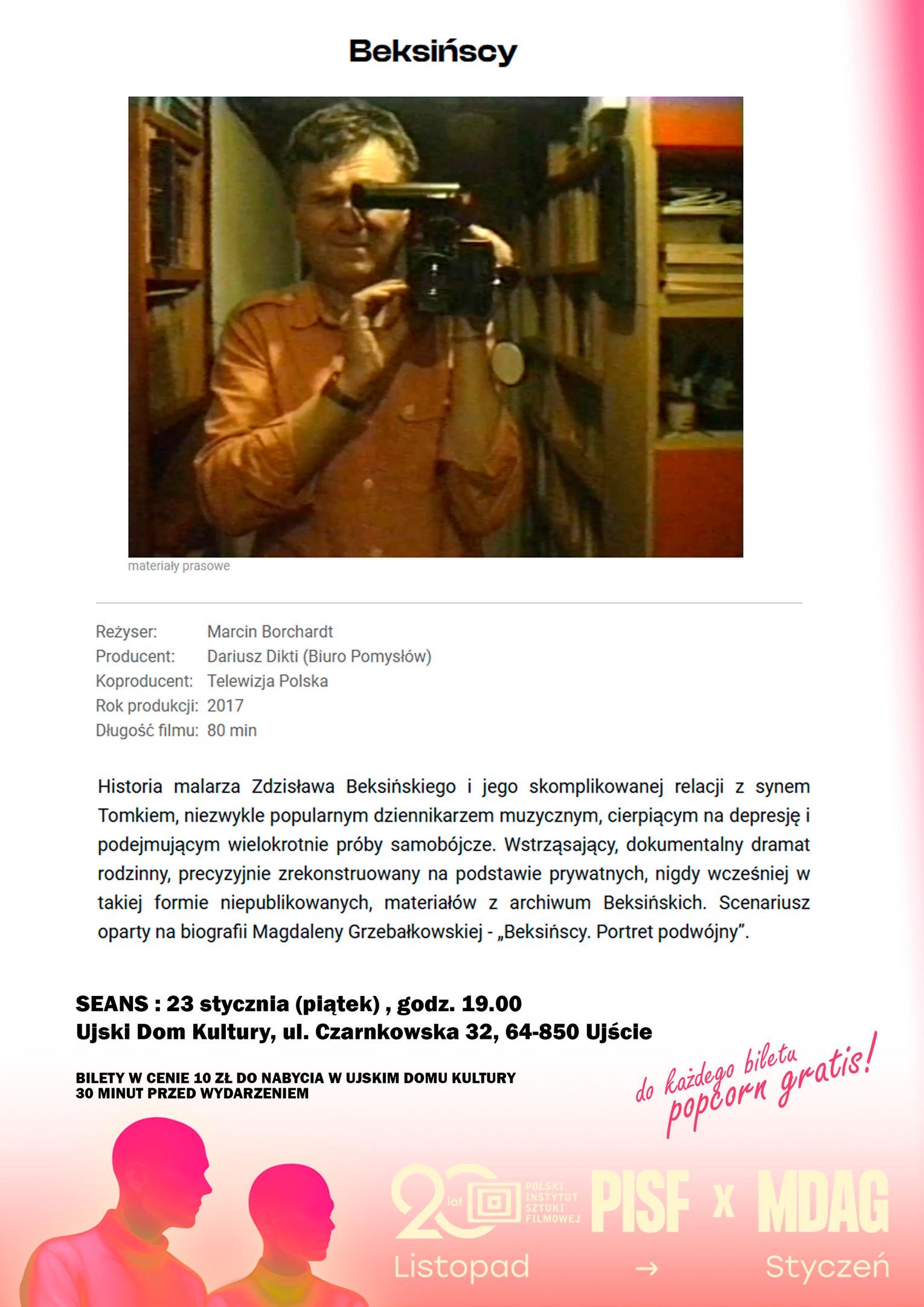 Bilety na każdy seans w cenie 10 zł / w cenie biletu darmowy popcorn dla wszystkich!