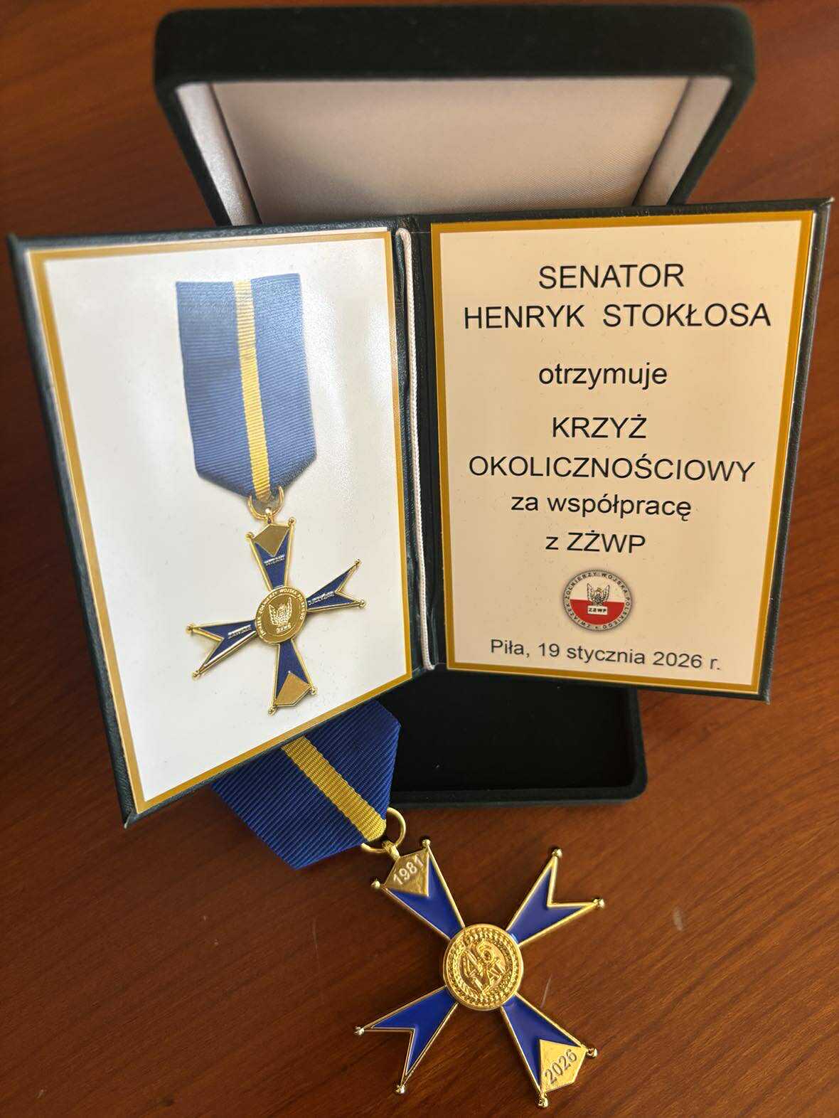 Odznaczenie przyznano w uznaniu zasług na rzecz funkcjonowania i rozwoju Związku Żołnierzy Wojska Polskiego. O przyznanie Krzyża Okolicznościowego wnioskował Zarząd Rejonowy ZŻWP w Pile. W miniony piątek prezes zarządu oddziału Zygmunt Jeliński, w asyście wiceprezesa płk. Wacława Stępyry, dokonał wręczenia odznaczenia.