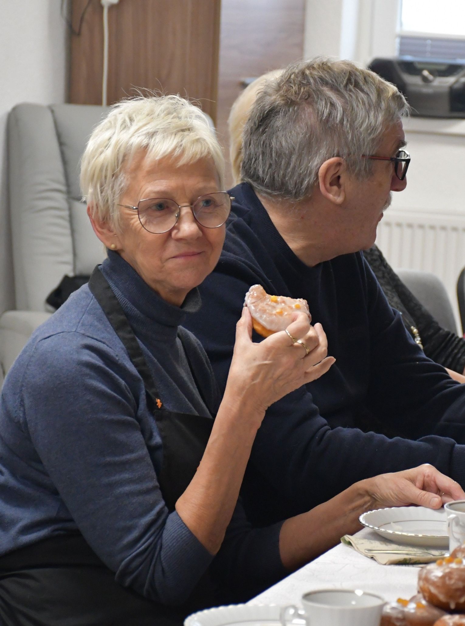 Seniorzy z zaangażowaniem przygotowywali tradycyjne pączki, dzieląc się swoimi sprawdzonymi przepisami oraz wspomnieniami związanymi z tym polskim zwyczajem. Spotkanie stało się doskonałą okazją do rozmów, wspólnej kawy i słodkiego poczęstunku.