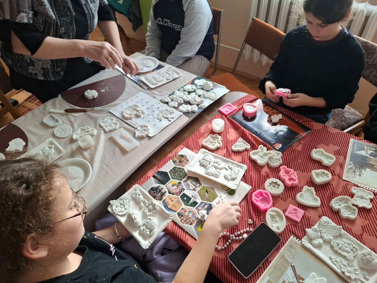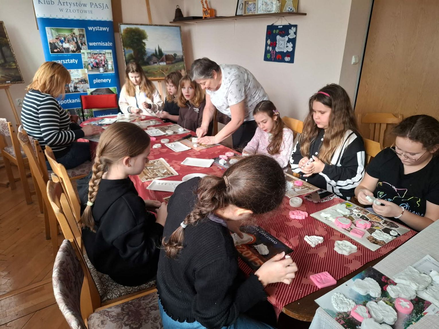 Warsztaty szydełkowe prowadziły Maria Ożga i Krystyna Kosiba, natomiast zajęcia z masy plastycznej – Renata Białowąs. W organizację włączyły się również artystki z Klubu „Pasja”, tworząc ciepłą, przyjazną atmosferę sprzyjającą integracji międzypokoleniowej.