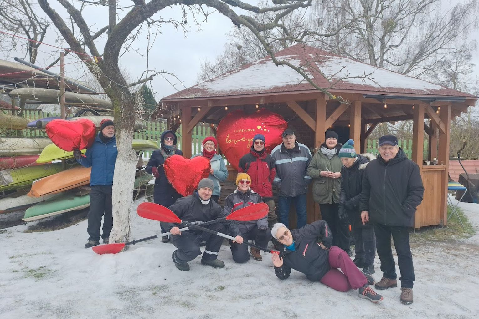 - Zima w tym roku tak jakby z nami wygrała, bo zaplanowany na 14 lutego Spływ Zakochanych w swoim mieście i tradycji - został odwołany. Odwołano, ponieważ zalodzone brzegi, a gdzieniegdzie i cała rzeka w poprzek zamarznięta nie pozwoliła bezpiecznie przeprowadzić tej tradycyjnej imprezy – relacjonuje Joanna Piotrowska z Oddziału PTTK w Pile - Ale, jak powiedział jeden z kajakarzy, duch w narodzie nie ginie! Czworo doświadczonych śmiałków, po uprzednim wyrąbaniu lodu na brzegu, spuściło kajaki na wodę. Popłynęli w górę do elektrowni, potem w dół rzeki dookoła Wyspy i powrócili do bazy. Razem prawie osiem kilometrów w ramionach rozgrzało ich i dostarczyło endorfin. Niesamowicie zadowoleni przybyli do ogniska, gdzie spotkali się z liczną grupą przyjaciół. Pyszna węgierska zupa komandorska, gorąca herbata i nastrojowe walentynkowe zdjęcia dopełniły całości. O nie… przepraszam… całości dopełniły dziki czające się na łące za płotem, pewnie też chciały popłynąć…