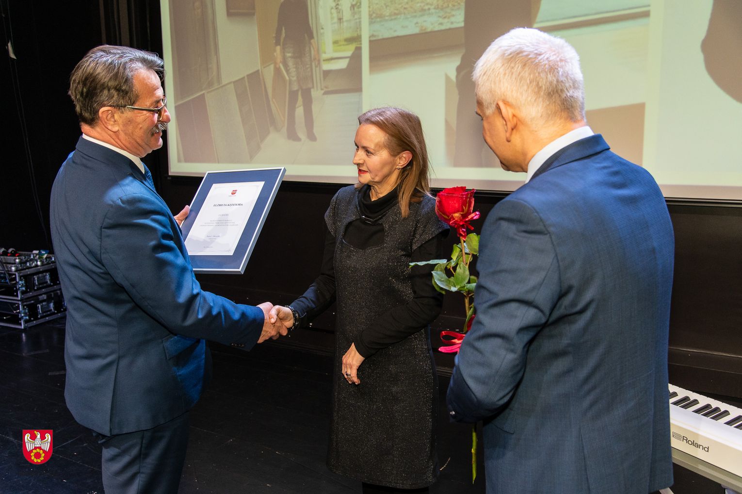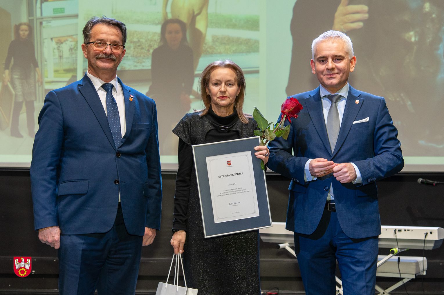 Nagrodę odebrała także Elżbieta Kędziora - od 1992 roku związana z BWA jako specjalista ds. programowych. Na co dzień koordynuje prace związane z planowaniem i organizowaniem wystaw, nadzoruje montaż i demontaż ekspozycji, aranżuje wystawy, przygotowuje dokumentację związaną z wydarzeniami artystycznymi. Tylko w latach 2021-2025 odpowiedzialna była za organizację ok. 70 wystaw malarstwa, grafiki, rzeźby, rysunku i innych sztuk wizualnych. Ale to tylko ułamek jej działań w Biurze Wystaw Artystycznych… Jej wiedza i kreatywność są ogromne. Opieka jaką z przyjacielskim zaangażowaniem otacza artystów przyjeżdżających do Galerii w Pile jest legendarna… To… „uśmiech BWA”, co podkreślono podczas Gali. „Kto przychodzi do BWA, ten wie, że tam zawsze Pani Ela wita uśmiechem”. W swojej pracy Elżbieta łączy po prostu wysoki profesjonalizm z pasją, zamiłowaniem do sztuki i wyrozumiałością dla artystów…
