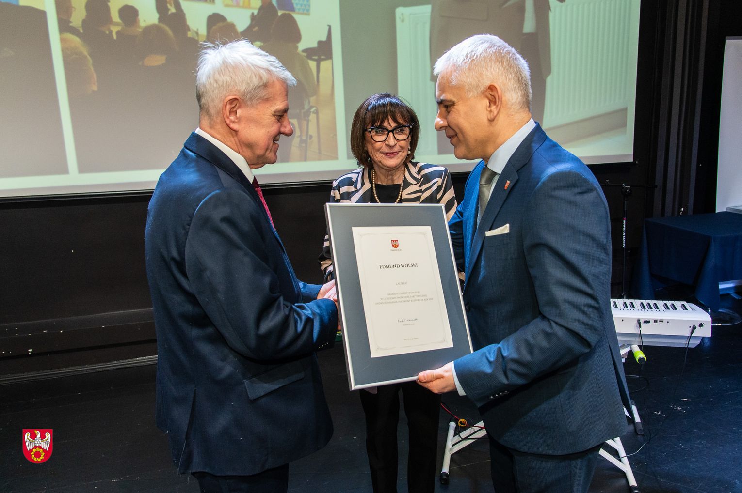 - To dla mnie wzruszający moment, ponieważ niedawno minęło ponad 40 lat mojej pracy zawodowej - z czego 20 lat przepracowałem jako dziennikarz, kilkanaście jak wydawca, a od 8 lat jako dyrektor Biura Wystaw Artystycznych - – mówił Edmund Wolski odbierając nagrodę - Każda praca to była przygoda. Każde pójście do pracy było przygodą, bo zawsze trafiałem na wspaniałych ludzi: i w dziennikarstwie i teraz, w BWA. Nawet państwo nie zdajecie sobie sprawy z tego, jaka to wielka radość i przyjemność spotykać najwybitniejszych polskich artystów, współpracować z nimi, oglądać ich prace, a na co dzień gościć setki młodzieży w naszych murach i tę młodzież uwrażliwiać na sztukę. Dzisiaj wyróżnione jest tutaj dojrzale pokolenie, ale żeby przesiąknąć tą kulturą i pokochać ją, i by nabyć tej wrażliwości, trzeba zaczynać właśnie od najmłodszych lat – od odwiedzania galerii, słuchania poezji, od zagłębiania się w muzykę. I od tego też jesteśmy my. Bo wrażliwe społeczeństwo to jest dobre społeczeństwo, to jest takie społeczeństwo, które jest przyjazne dla wszystkich. Kultura temu właśnie służy! Ona sprawia, że ludzie nawzajem się kochają i szanują – stwierdził E. Wolski.
