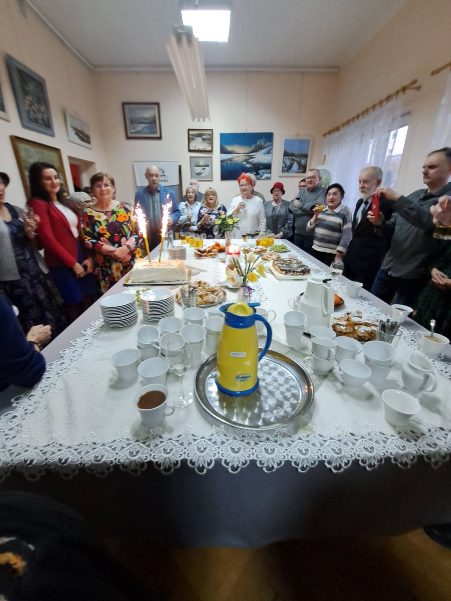 Szczególnym momentem była niespodzianka przygotowana dla Wiesławy Kurowskiej z okazji jej 80-lecia urodzin – piękny tort oraz ciepłe życzenia od członków Klubu Artystów „Pasja” wywołały ogromne wzruszenie i długie brawa.