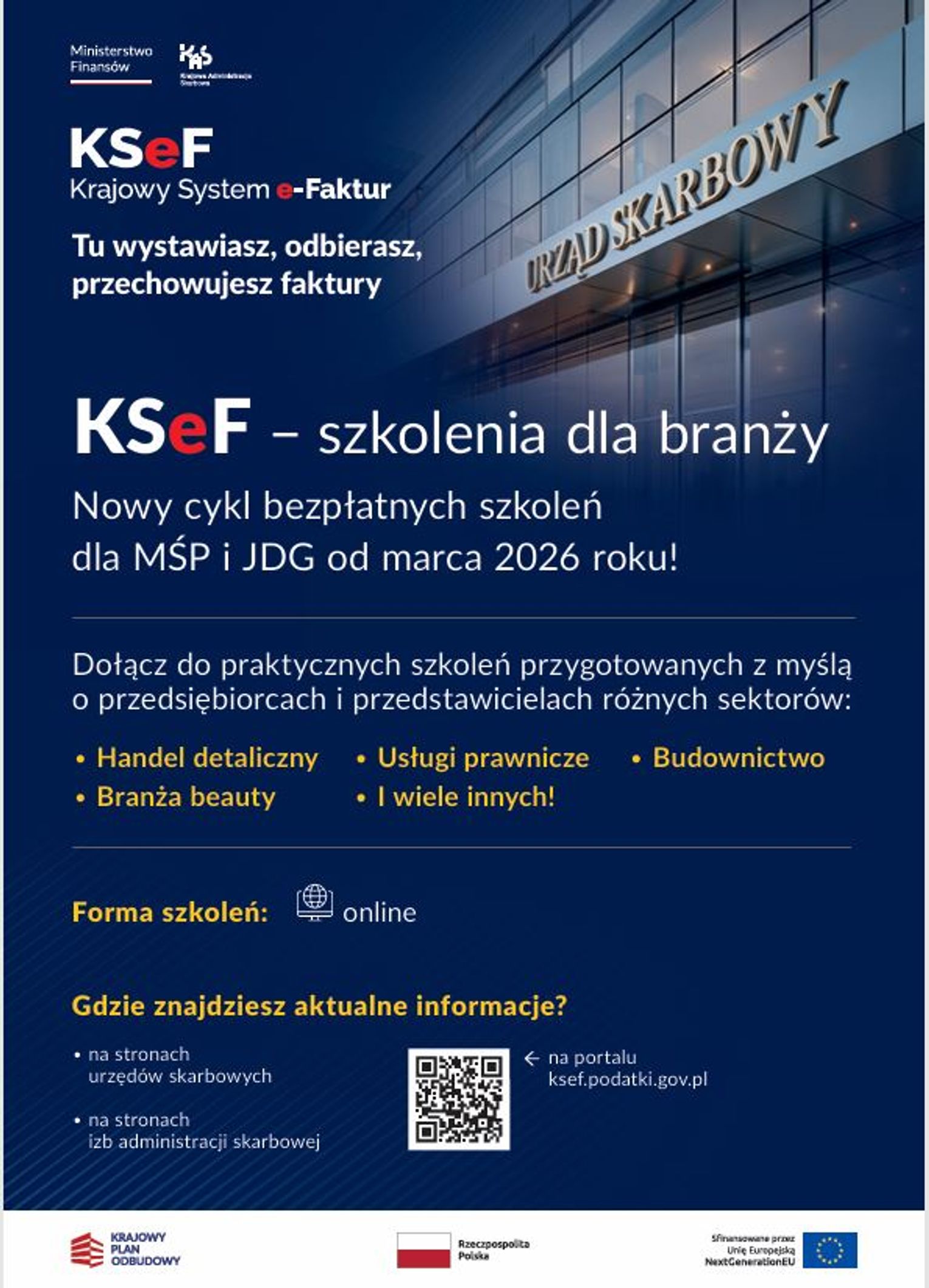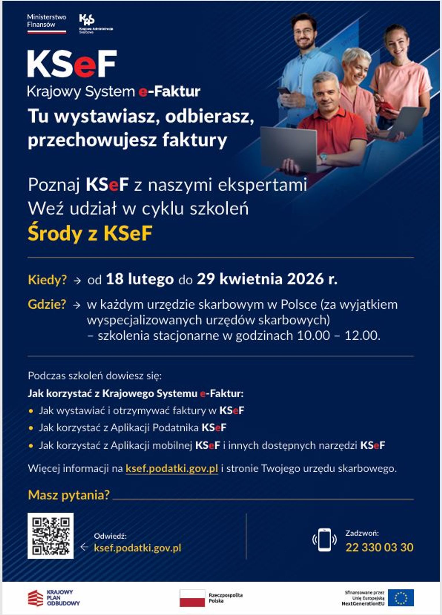 Naczelnik Urzędu Skarbowego w Złotowie zaprasza na szkolenia Środy z KSeF oraz szkolenia dla branży dotyczące KSeF.